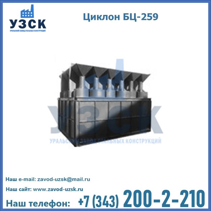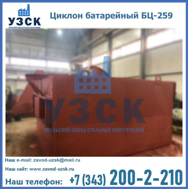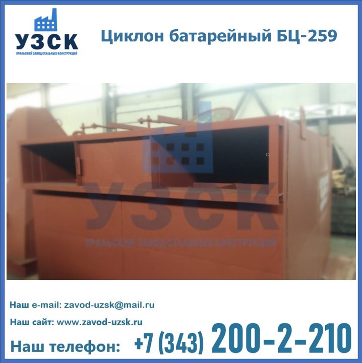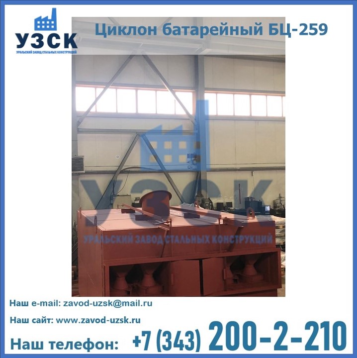 Приобрести качественное оборудование, в том числе, циклоны БЦ-259, можно в компании УЗСК в Чебоксарах. Мы предлагаем долговечную и надежную продукцию по приемлемой цене. Заказать и купить циклоны или другие изделия высокого качества можно через сайт Уральского Завода Стальных Конструкций, или позвонив по указанному в разделе «Контакты» телефону.