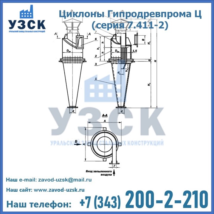 Циклоны Гипродревпрома Ц (серия 7.411-2) высокого качества можно купить в компании «УЗСК» в Чебоксарах. Наши специалисты предоставят всю необходимую информацию информацию и помогут с выбором модели циклона. Подробные технические характеристики, конструкцию, параметры, ассортимент и стоимость продукции можно также найти на сайте УЗСК.
