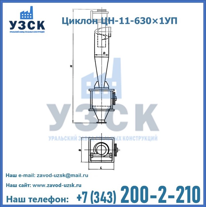 Уральский Завод Стальных Конструкций в Чебоксарах производит и продает надежное, эффективное и производительное оборудование, имеющее длительную гарантию и большой эксплуатационный ресурс. УЗСК также предлагает циклоны из нержавеющей стали высокого качества. По желанию заказчика толщина стали для циклона и бункера может быть увеличена. Заказать и купить циклоны ЦН-11 высокого качества и по доступной цене можно через наш сайт или по указанному в разделе «Контакты» телефону.
