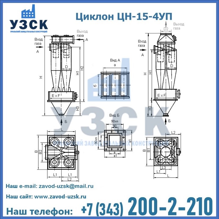 Завод «УЗСК» в Чебоксарах предлагает большой выбор циклонов ЦН-15-600×4УП и прочих устройств, полностью укомплектованных и готовых к эксплуатации. Мы гарантируем соответствие оборудования всем требованиям ГОСТ и ТУ, износостойкость и высокую производительность предлагаемого оборудования. Уральский Завод Стальных Конструкций изготавливает и продает надежное, эффективное и производительное оборудование, имеющее длительную гарантию и большой эксплуатационный ресурс. Если требуется изготовить циклон нестандартных размеров, то такой вариант выполнения заказа тоже предусмотрен, так как предприятие имеет собственные производственные площади и надежных поставщиков. На все поставляемое или производимое оборудование имеются чертежи и прочая техническая документация. Заказать и купить циклоны или прочее оборудование высокого качества и по доступной цене можно через наш сайт или по указанному в разделе «Контакты» телефону.