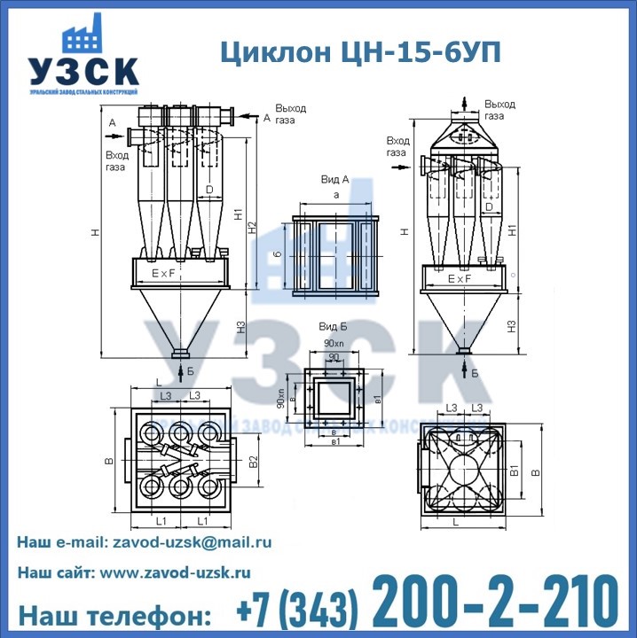 Завод «УЗСК» в Чебоксарах предлагает большой выбор циклонов ЦН-15-700×6УП и прочих устройств, полностью укомплектованных и готовых к эксплуатации. Мы гарантируем соответствие оборудования всем требованиям ГОСТ и ТУ, износостойкость и высокую производительность предлагаемого оборудования. Уральский Завод Стальных Конструкций изготавливает и продает надежное, эффективное и производительное оборудование, имеющее длительную гарантию и большой эксплуатационный ресурс. Если требуется изготовить циклон нестандартных размеров, то такой вариант выполнения заказа тоже предусмотрен, так как предприятие имеет собственные производственные площади и надежных поставщиков. На все поставляемое или производимое оборудование имеются чертежи и прочая техническая документация. Заказать и купить циклоны или прочее оборудование высокого качества и по доступной цене можно через наш сайт или по указанному в разделе «Контакты» телефону.