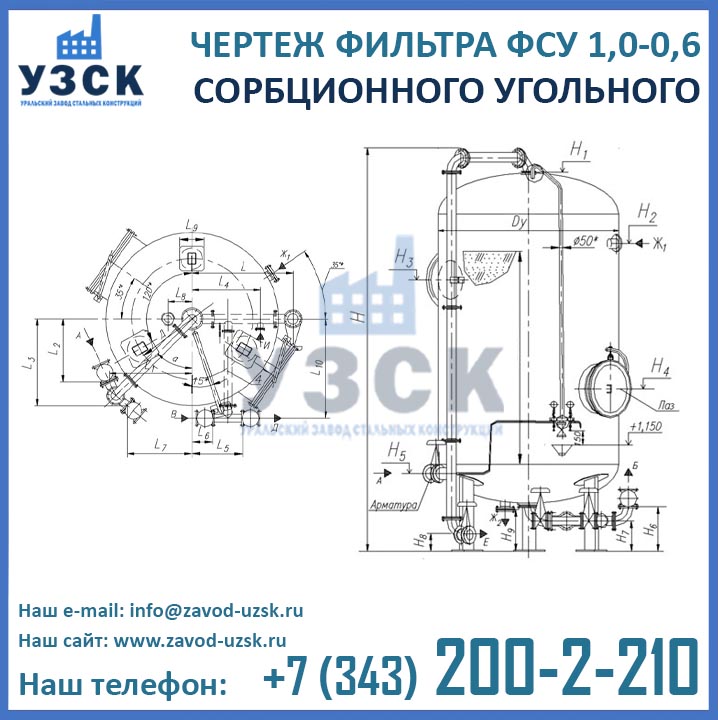 Наш завод (Уральский завод стальных конструкций) является производителем угольных фильтров, сам осуществляет изготовление и реализацию выпускаемой продукции. Приобретая фильтры ФСУ-1.0-0.6 в Чебоксарах от производителя, Вы приобретаете оборудование без наценок всевозможных посредников, а также значительно экономите свое время. Фильтры ФСУ1.0-0.6 завода УЗСК – это гарантия качества, кратчайшие сроки изготовления и цена, которая Вам понравится.