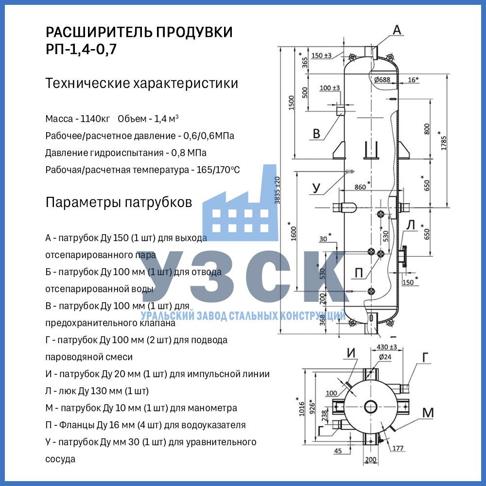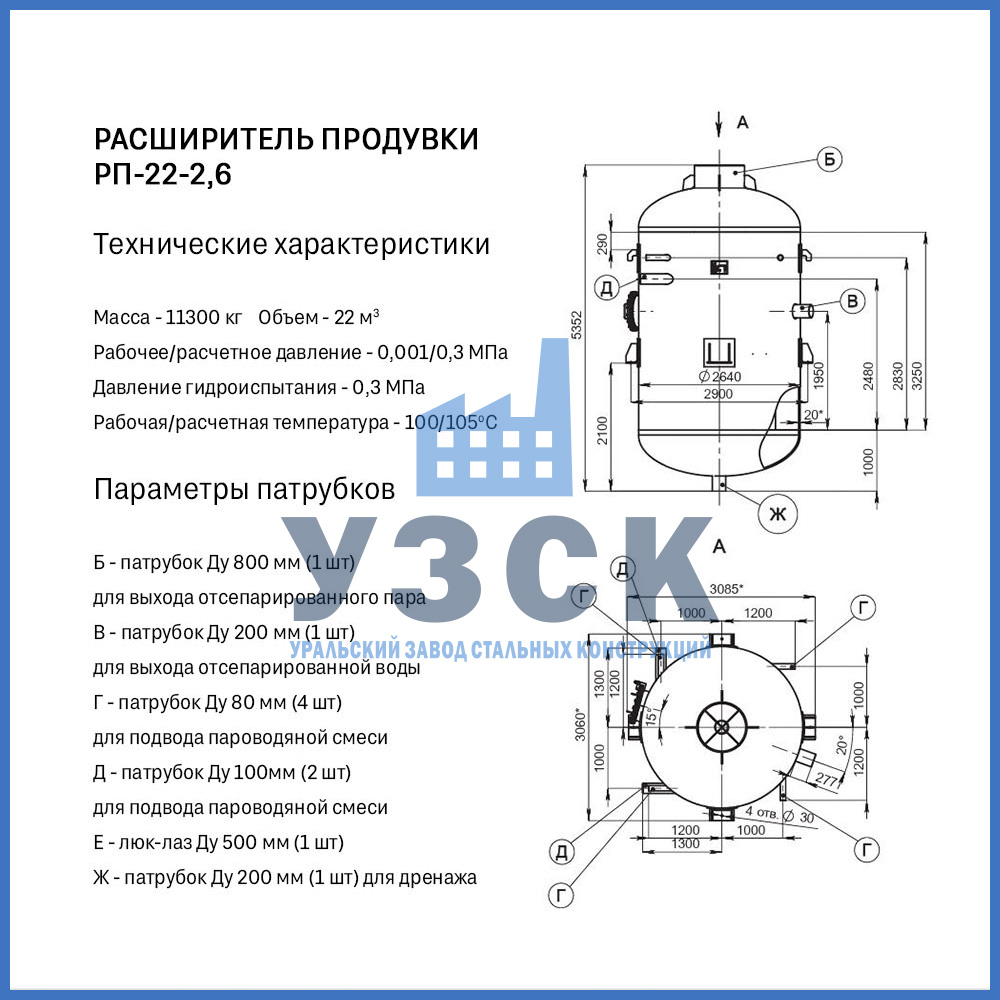 Главная > Продукция > Емкости > Расширитель продувки РП (РНП, РПП) в Чебоксарах