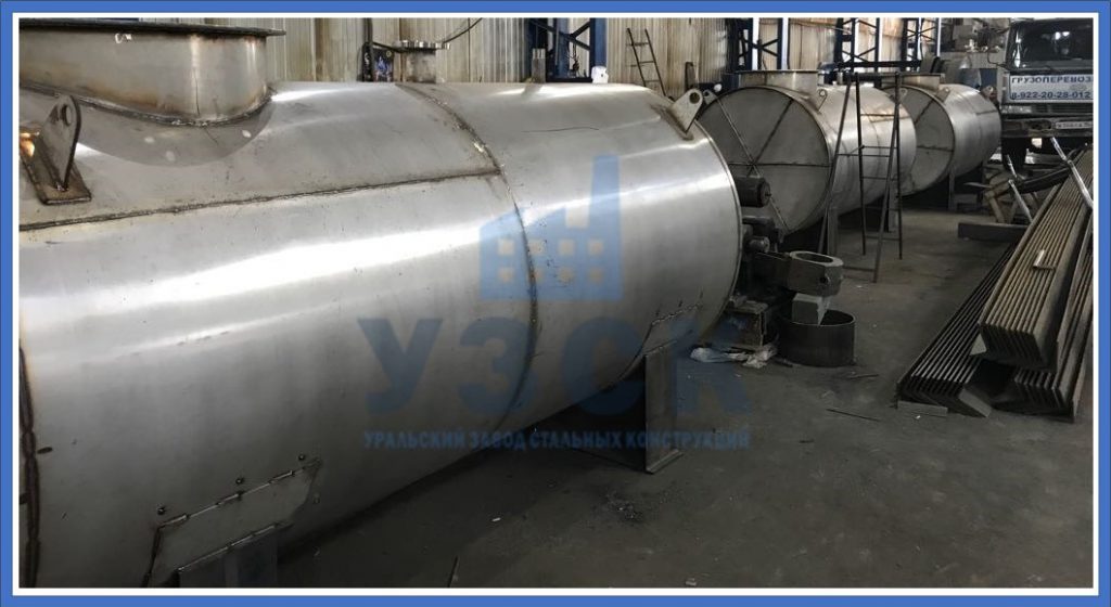 Одним из предприятий, создающих вертикальные и горизонтальные резервуары из нержавейки, является наш завод. В стандартах на продукцию указано, расчет конструкций из стали не зависит от марки. Однако в проекте учитываются разные температурные расширения, дополнительные сопротивления.